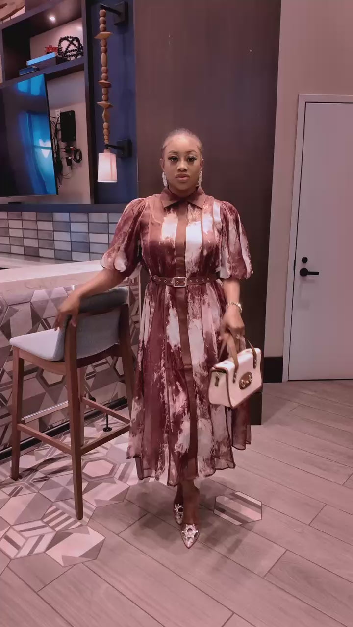 Elegant Marble-Print Midi Dress