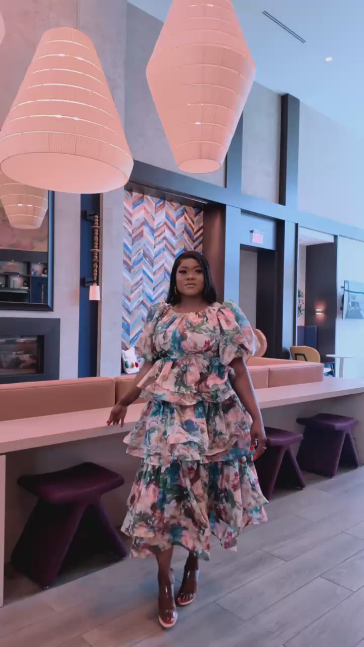 Floral Cascade Ruffle Maxi Dress