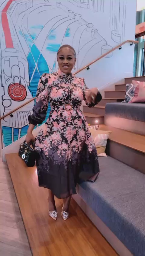 Blossom Elegance Belted Midi Dress