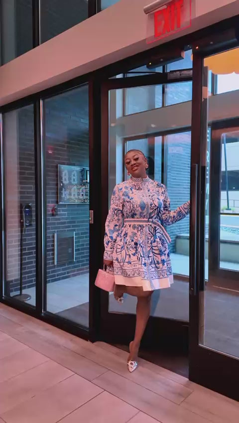Chic Porcelain Print Mini Dress