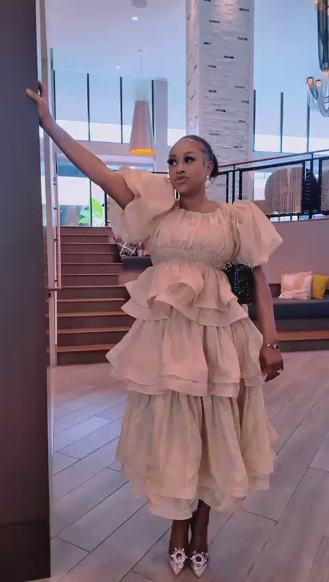 Golden Aura Ruffle Maxi Dress