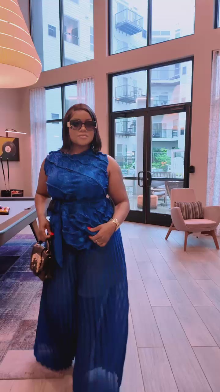 Blue Miyake Pant & Top Set | Blue