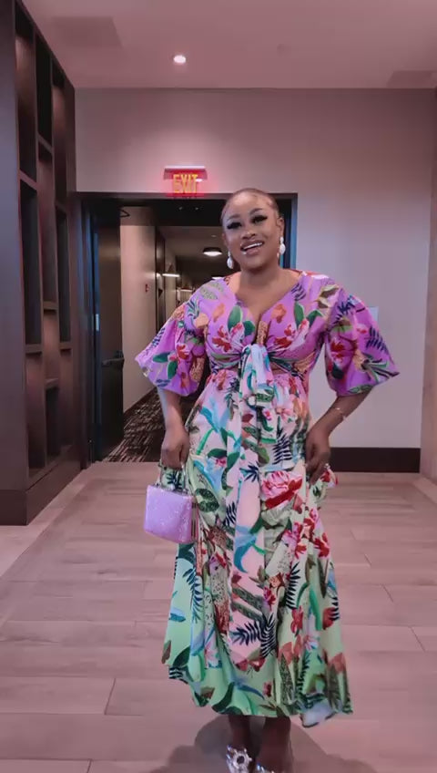 Tropical Bliss Tie-Front Maxi Dress