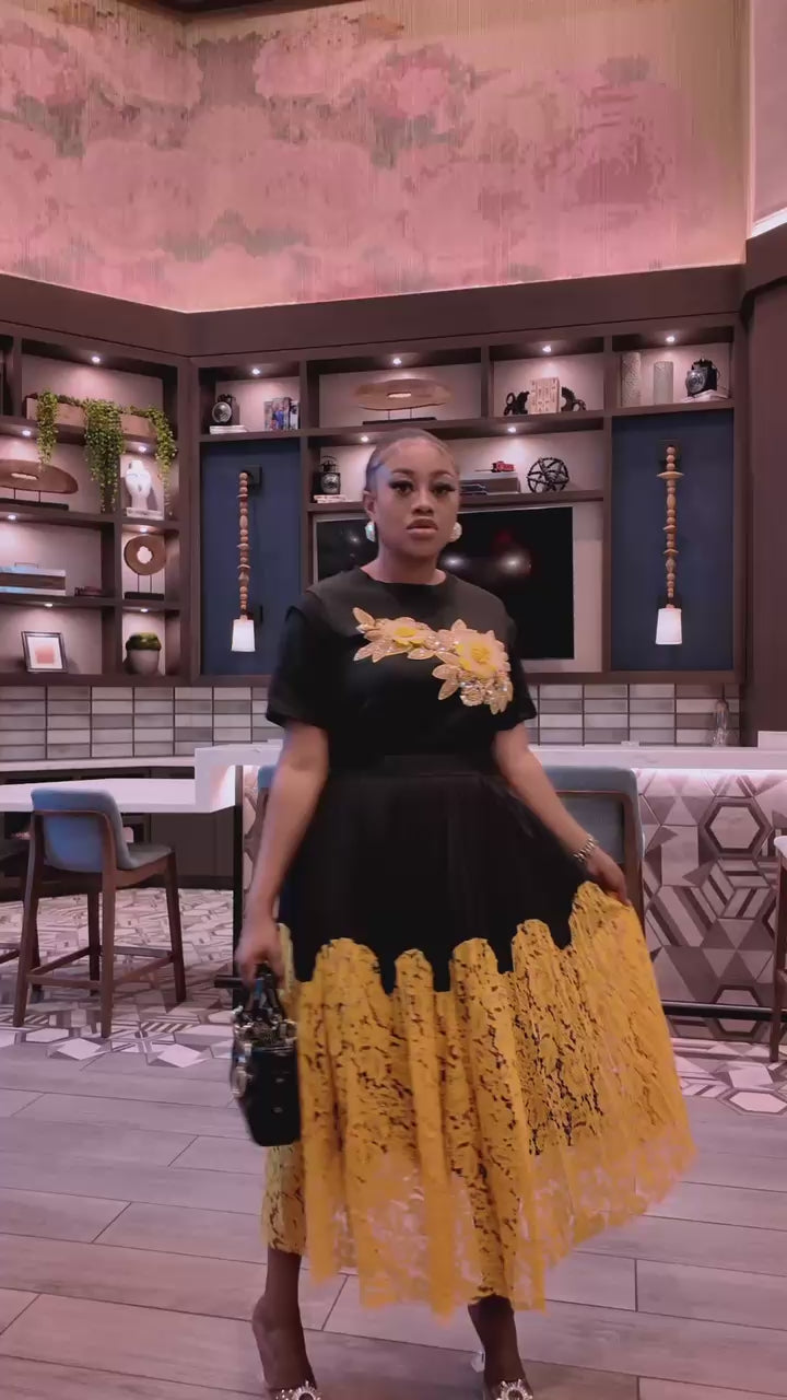 Ruby Elegant Black & Red Lace Skirt & Top Set